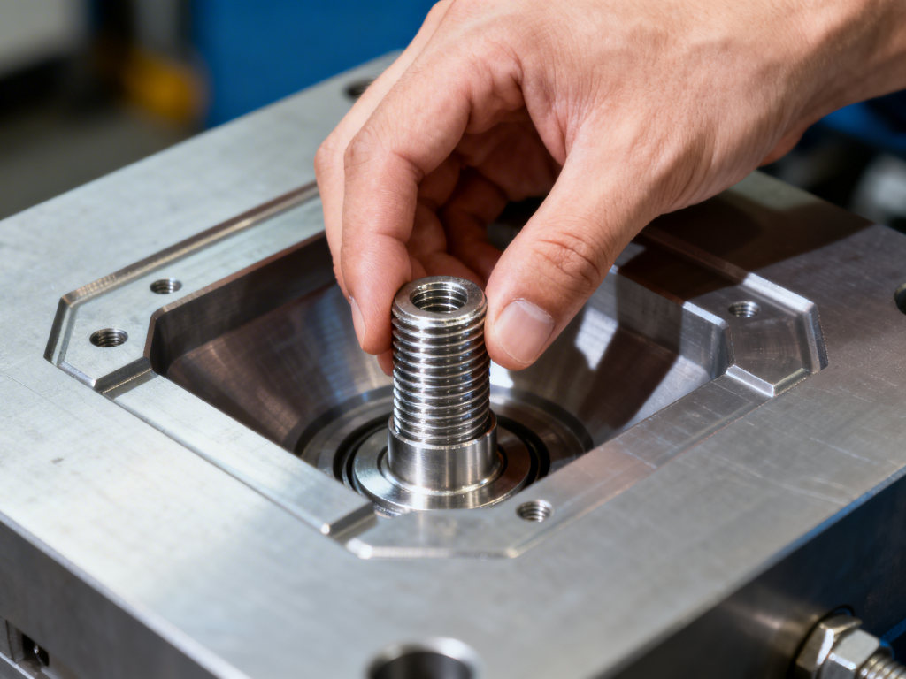 The integration of metal inserts—such as threaded brass nuts or stainless steel bushings—requires high-precision locating features within the mold. In rapid tooling, hand-loaded inserts are frequently used for low-volume runs (50–500 units). Operators must place these inserts manually into the mold before each cycle. To ensure repeatability, the mold design must include robust locating pins that prevent the insert from shifting during the high-pressure injection phase.